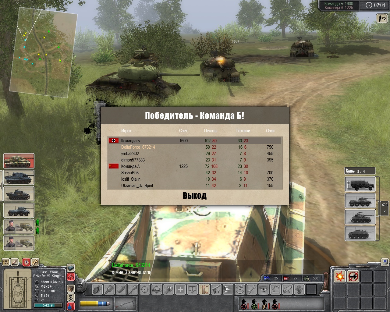| не знаю на что потянет но размещу! Добавлено (13.03.2010, 22:59) --------------------------------------------- если не понятн то делтафорс эт я Добавлено (13.03.2010, 23:01) --------------------------------------------- еще я в режиме всем набрал 1000 очков!но кто млять придумал клавишу пустк на клаве!короч нажал и результат стёрся(вылетел)!!!!!!(((((((((( Добавлено (13.03.2010, 23:02) --------------------------------------------- кст видно что я уничтожил 16 танков!из них 8 тяжёлых)))))